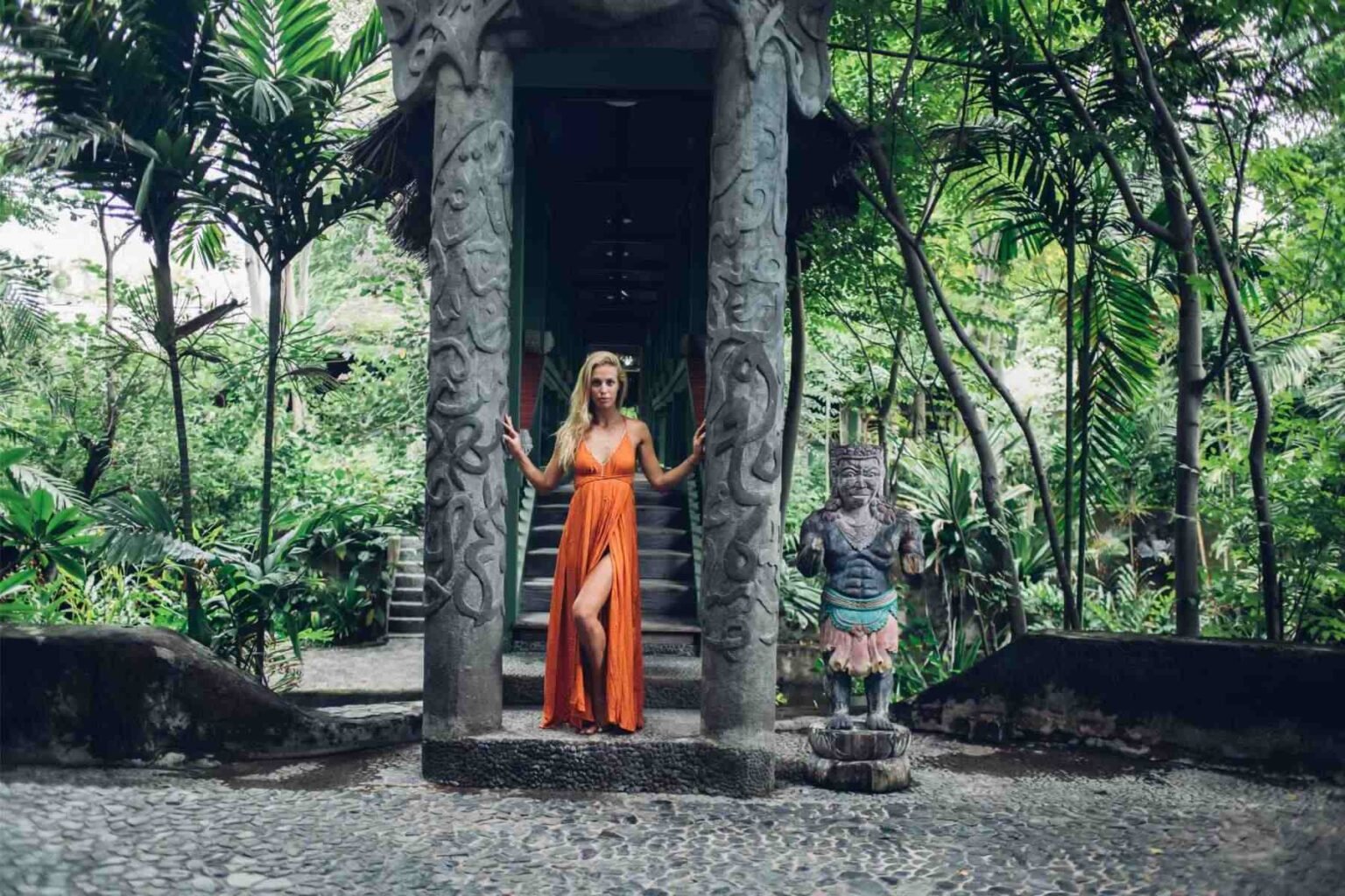 Escape to an elevated villa surrounded by tropical jungle, wooden interiors, and a private open-air rain shower.